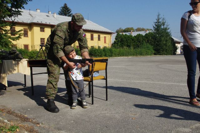 Príslušníci Práporu podpory velenia, si pre deti prichystali rôzne ukážky ako vojenskú techniku, zbrane, nosný modulárny systém, balistickú prilbu a mnohé iné. Vojenská technika bola pristavená pre návštevníkov na nástupisku útvaru. Na prekážkovej dráhe si deti mohli skúsiť hod cvičným ručným granátom, plazenie a beh cez prekážky. Veľkú radosť deti prejavili na pracovisku, kde ich vojačky z práporu zamaskovali vojenskými farbami. Potom sa odobrali na stanovište, kde si mohli obliecť na seba nosný modulárny systém, balistickú prilbu a skúsiť si, aké je to pohybovať sa v ochrannej plynovej maske. Na malú chvíľku si každé jedno dieťa mohlo skúsiť, aké je to byť vojakom.