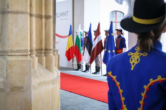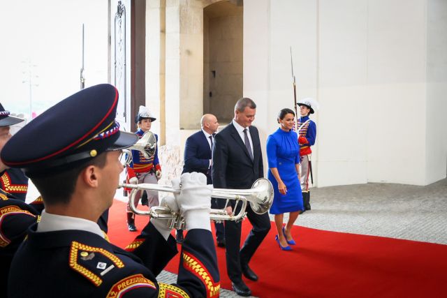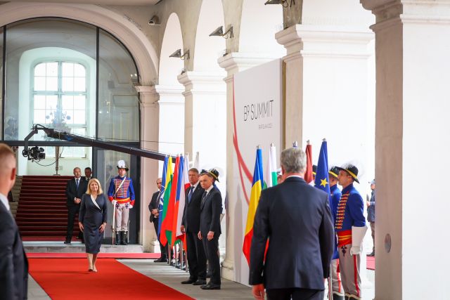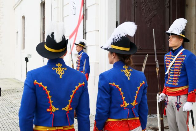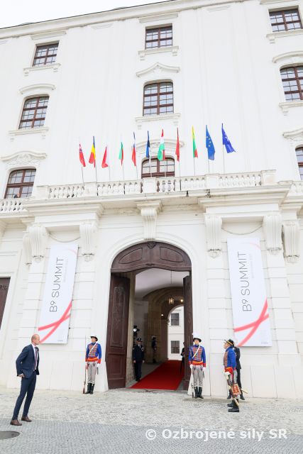 Hlavné prijatie prezidentov B9 sa uskutočnilo na Bratislavskom hrade pod velením majora Tomáša Meda a poručíčky Kataríny Černákovej.
