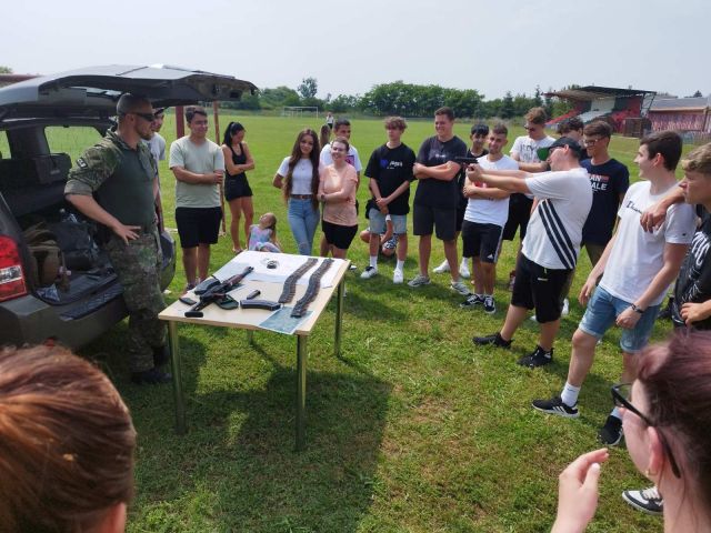 Branná príprava v rámci povinného vyučovania Dňa 21. júna 2023 sa študenti Strednej odbornej školy v Kráľovskom Chlmci zúčastnili ,,Brannej prípravy v rámci povinného vyučovania“ v priestoroch futbalového ihriska mesta Kráľovský Chlmec. Určení profesionálni vojaci od 14.tankového práporu Trebišov si pripravili pre študentov program brannej prípravy na piatich pracoviskách s pútavými praktickými ukážkami a hlavne nácvikmi. Na každom pracovisku a to, základy topografie, radiačná, chemická a biologická ochrana, prekážková dráha, hod granátom, ukážka ručných zbraní a techniky si mohli študenti po praktickej ukážke sami na vlastnej koži vyskúšať, čo obnáša práca profesionálneho vojaka. Záujem študentov milo prekvapil a my len dúfame, že sa pridajú do našich radov.