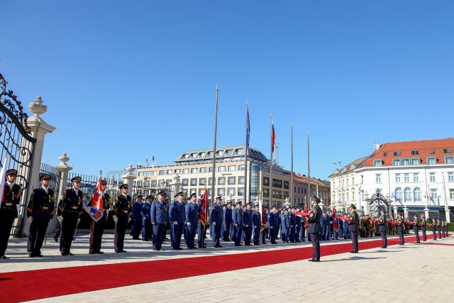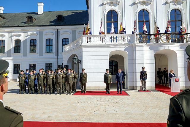 Prezidentka Slovenskej republiky a hlavná veliteľka Ozbrojených síl Slovenskej republiky dnes počas slávnostného nástupu pripla stuhy na bojové zástavy desiatich vojenských útvarov. Slávnostný ceremoniál sa uskutočnil na prednom nádvorí Prezidentského paláca pri príležitosti premenovania útvarov.
