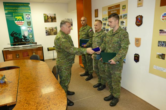 Slávnostný nástup pri príležitosti udelenia medailí Dňa 23. októbra 2023 sa v priestoroch Sály cti a slávy, Veliteľstva 2. mechanizovanej brigády uskutočnil slávnostný nástup za prítomnosti náčelníka Štábu pre operácie GŠ OS SR brigádneho generála Martina Stoklasu. Slavnostný nástup sa konal pri príležitosti udelenia pamätných medailí majorovi Korobaničovi, nadporučíkovi Frištikovi a nadporučíkovi Bodymu za kvalitné plnenie úloh a to hlavne v oblasti prípravy, riadenia výcviku a podpory v operácií EUMAM EU.