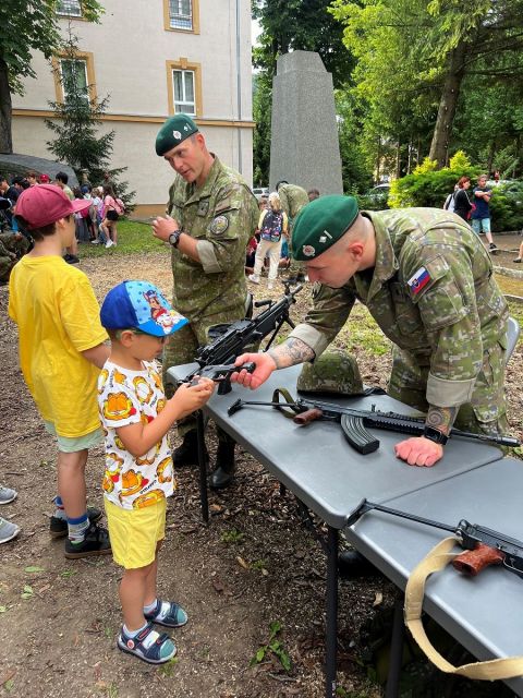 Deň otvorených dverí v kasárňach SNP Dňa 07. júna 2024 sa v priestoroch kasární SNP konal deň detí spolu s dňom otvorených dverí posádky Trenčín. Brány kasární sa pre verejnosť otvorili hneď ráno, kedy už bol pre deti ale aj dospelých pripravený zaujímavý program. Mali možnosť vidieť ukážku bojovej vojenskej techniky, vojenských zbraní, spojovacích prostriedkov a výstrojných súčiastok. V rámci dynamickej časti, kynológovia z Kubrej pripravili ukážku útoku služobných psov, ktorí sú špeciálne vycvičení na zneškodnenie páchateľa. Príslušníci 71. práporu podpory velenia pripravili pre deti mnoho atraktívnych aktivít ako napríklad, ukážku prvej pomoci, prekážkovú dráhu, maľovanie na tvár a taktiež streľbu z airsoftových zbraní. Celková účasť na DOD bola približne 1000 detí z materských a základných škôl z Trenčína ale aj z okolitých miest. Veľké poďakovanie patrí nielen Vojenskej podpornej nadácií, z ktorej finančných prostriedkov boli zadovážené sladkosti pre deti, ale aj 14. tankovému práporu, 22. mechanizovanému práporu, 4. pluku logistiky, 42. zásobovacej základni, EOD, vojenskej polícií, policajnému zboru a dobrovoľnému hasičskému zboru Kolačín, ktorí sa taktiež podieľali na realizácií tohto podujatia.