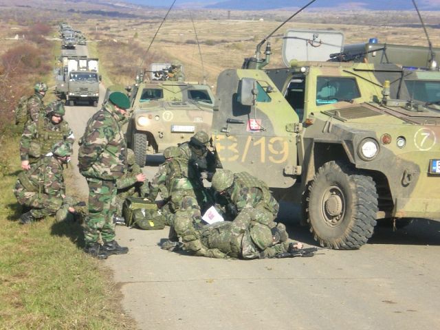 Reprezentanti z USA, Českej republiky, Poľskej republiky, Čínskej ľudovej republiky a z Ruskej federácie boli spolu s účastníkmi kurzu svedkami priebehu účinnej obrany konvoja ktorý prepravoval humanitárny materiál určený pre civilného obyvateľstvo obcí Vozárka a Pliešovce. Konvoj bol pri presune z letiska hlavného mesta Djamen do predsunutej základne Riečky zasiahnutý nástražným výbušným systémom a následne prepadnutý ozbrojenou militantnou skupinou. Na základe vývoja situácie veliteľ konvoja požiadal o vyslanie leteckej podpory, ktorú účinne naviedol na cieľ predsunutý letecký navádzač zo zostavy konvoja. Letecká podpora kombinovaná s paľbou pozemnej zložky ochrany konvoja tvorenej vozidlami BVP-2 a Aligátorov odrazila útok militantov a vynútila si voľný priechod pre splnenie úlohy.
