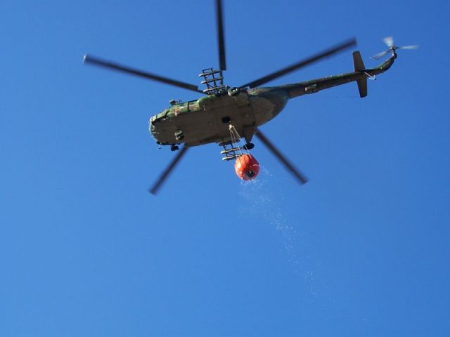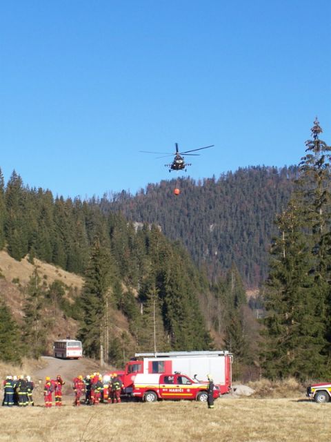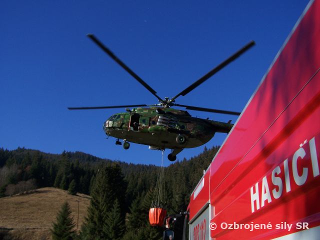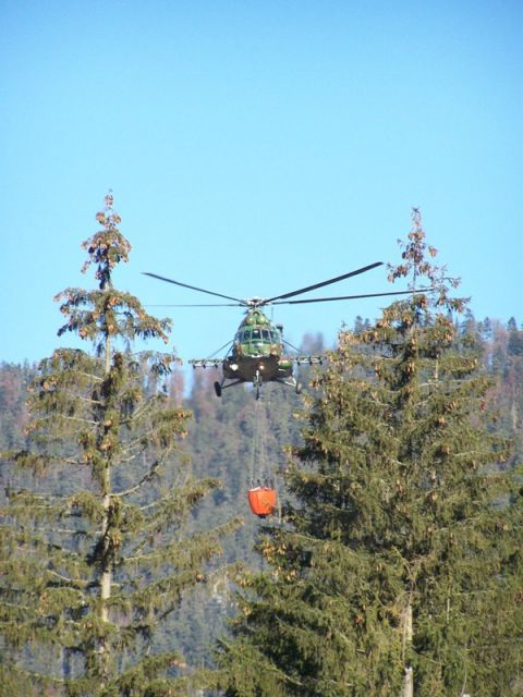 Pri hasení požiaru od pondelka rána pomáhajú aj vrtuľníky Mi-17 z prešovského vrtuľníkového krídla. V utorok, kedy bol požiar lokalizovaný a zdalo sa, že oheň je pod kontrolou, prešovskí piloti za takmer 9 letových hodín zhodili 42 BAMBI vakov.