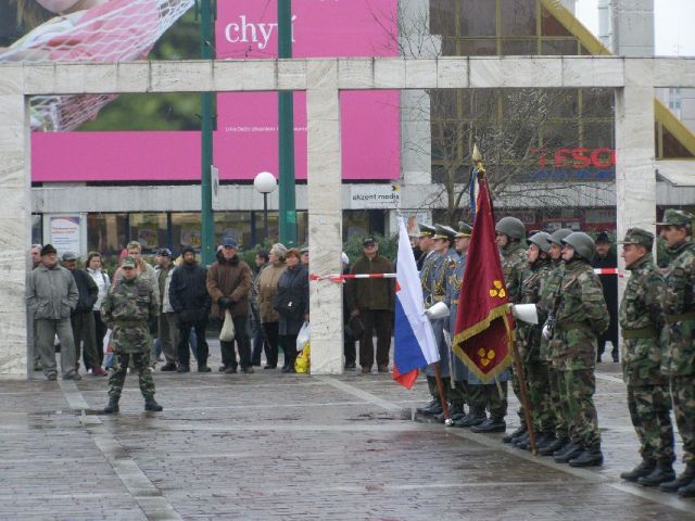 Príslušníkom ocenených útvarov zablahoželal k udeleniu čestných názvov náčelník vojenskej kancelárie prezidenta SR brigádny generál Ing. Jaroslav MURÍŇ a zástupca náčelníka Generálneho štábu OS SR generálporučík Ing. Peter Gajdoš.