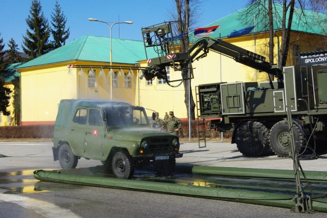 Veliteľské zhromaždenie v popoludňajších hodinách pokračovalo praktickou ukážkou dekontaminačného vozidla DEKVOZ a ukážkou poľnej mechanizovanej práčovne.