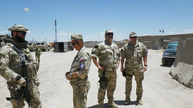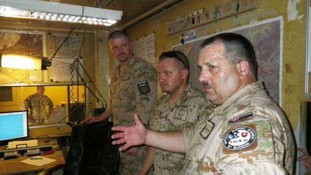 Veliteľ brigády v sprievode odchádzajúceho veliteľa NSE (National Support Element) podplukovníka Róberta Plávku a jeho nástupcu podplukovníka Mariána Makaya sa priamo na strážnych pozíciách presvedčil o náročnej a vysoko zodpovednej práci slovenských vojakov v tejto vojenskej operácii na vojenskej základni v Tarin Kowte.