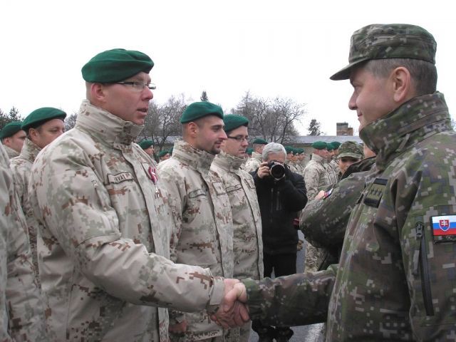 Dnes 19. decembra veliteľ pozemných síl OS SR brigádny generál Ondřej Novosad oficiálne privítal na pôde Sokolovských kasární v Prešove časť vojakov slovenského kontingentu, ktorá šťastlivo pristála na letisku Sliač 3. decembra tohto roku. Počas slávnostného nástupu sa brigádny generál Novosad prihovoril vojakom a poďakoval im nie len za splnenie úloh v operácií, ale aj za to, že zlepšujú prestíž Slovákov v zahraničných operáciách svojim profesionálnym prístupom k práci. Rovnako sa vojakom prihovoril aj primátor mesta JUDr. Pavel Hagyari, ktorý im poprial mnoho šťastných chvíľ v kruhu rodiny práve v tomto predvianočnom čase.