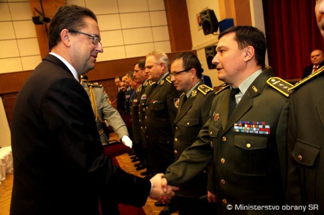 Minister obrany SR Martin Glváč a náčelník Generálneho štábu Ozbrojených síl SR generálporučík Peter Vojtek dnes pri príležitosti 20. výročia vzniku Slovenskej republiky udelili 19 vojakom a zamestnancom rezortu pamätné medaily.