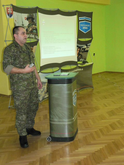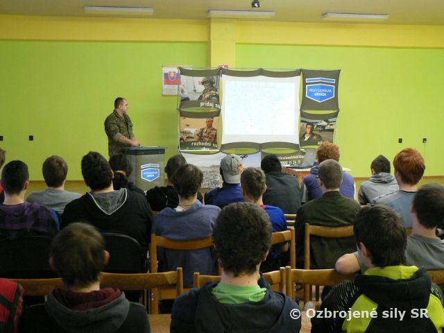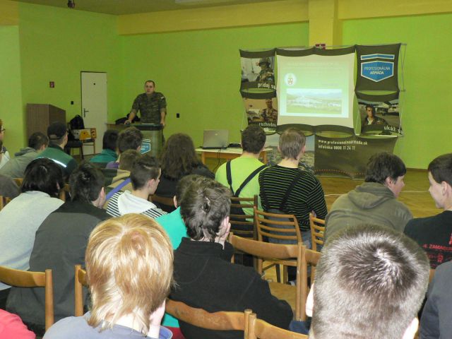 Príslušníci Regrutačnej skupiny informovali študentov o možnosti štúdia na Akadémii ozbrojených síl generála Milana Rastislava Štefánika v Liptovskom Mikuláši v akademickom roku 2013/2014 a o možnosti štátnej služby profesionálneho vojaka. V prezentácii ponúkli komplexné informácie pre správny „nápad stať sa profesionálnym vojakom“. Veď kvalitná informovanosť, rovná sa správny výber. To platí i pri výbere štúdia po skončení strednej školy. Ak sa niekto pýta, či sa oplatí študovať, odpoveď by mala byť jednoznačná „áno, oplatí“. Veď Akadémia ozbrojených síl v Liptovskom Mikuláši je škola s medzinárodnou akceptáciou, ktorá spĺňa a prevyšuje akademické kvality štátnych a verejných vysokých škôl v Slovenskej republike a v stredoeurópskom vzdelávacom priestore.