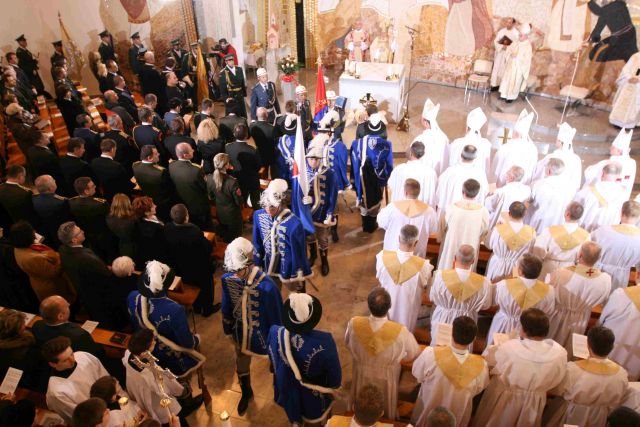 Slávenie jubilea pokračovalo v Katedrále sv. Šebastiána slávnostnou sv. omšou za účasti predstaviteľov a príslušníkov OS a OZ SR z domova i zo zahraničia vysielanou v priamom prenose RTVS.