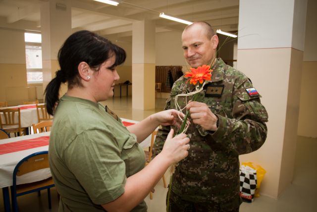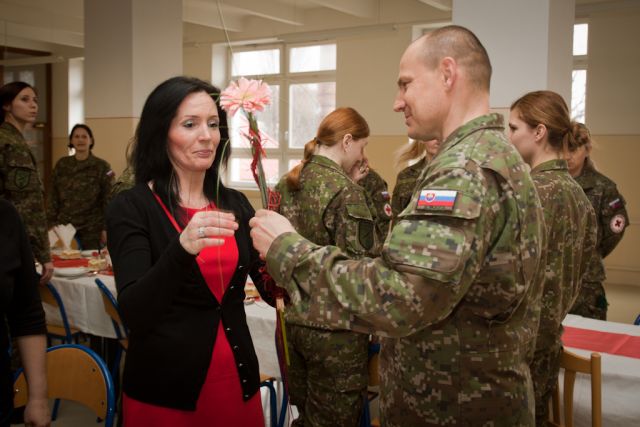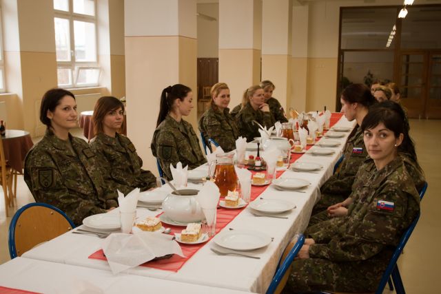 Slávnostný obed pri príležitosti Medzinárodného dňa žien zorganizoval 8. marca pre vojačky a zamestnankyne nitrianskeho 12. mechanizovaného práporu veliteľ podplukovník Štefan Acsai.