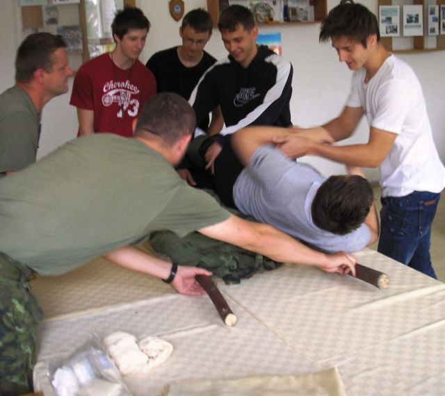 V úvode kurzu získali účastníci vedomosti z topografie, teda ako sa orientovať v neznámom teréne. Svoje otázky študenti kládli prieskumníkom, ktorí im na všetky zodpovedali čerpajúc z vlastných skúseností. Zaujímavým pracoviskom pre gymnazistov bola príprava prístreškov a ohnísk a prežitie v poľných podmienkach. Tu sa naučili pomocou celty a prírodných materiálov postaviť prístrešok, založiť oheň a pripraviť si stravu. Študentov zaujal aj výcvik v technike sebaobrany. Tí odvážnejší si boj z blízka s profesionálmi vyskúšali. Počas druhého dňa sa študenti zdokonalili v technike sebaobrany, v zdravotníckej príprave a oboznámili sa so zbraňami profesionálov. Počas záverečného dňa si študenti vyskúšali vojenské masky a pláštenky, v sebaobrane sa naučili ako sa obrániť pred útokom so zbraňou. Profesionáli si so študentmi precvičili aj základné uzly a spôsoby zlaňovania. Veríme, že pre tretiakov a ich vyučujúcich boli tieto tri dni zaujímavé a tešíme sa na spoluprácu o rok.