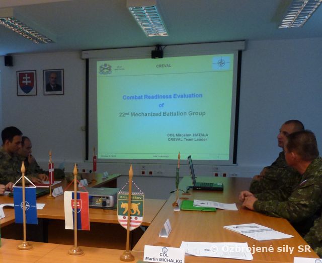 Po príchode sa príslušníci previerkového tímu, počas úvodného brífingu predneseného veliteľom kontrolovanej mechanizovanej práporovej skupiny podplukovníkom Ľubomírom Rapcom, zoznámili s aktuálnou pripravenosťou jednotky na vykonanie 2.fázy previerky. Následne bol členom CREVAL tímu prezentovaný plán vykonania cvičenia, ktorý im predostrel riadiaci práporového taktického cvičenia s bojovou streľbou plukovník Martin Michalko. Prítomní počas spoločného stretnutia komunikovali v anglickom jazyku, vrátane prezentovaných príspevkov.