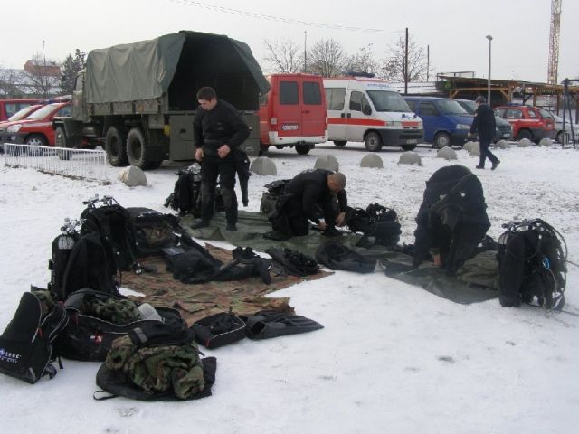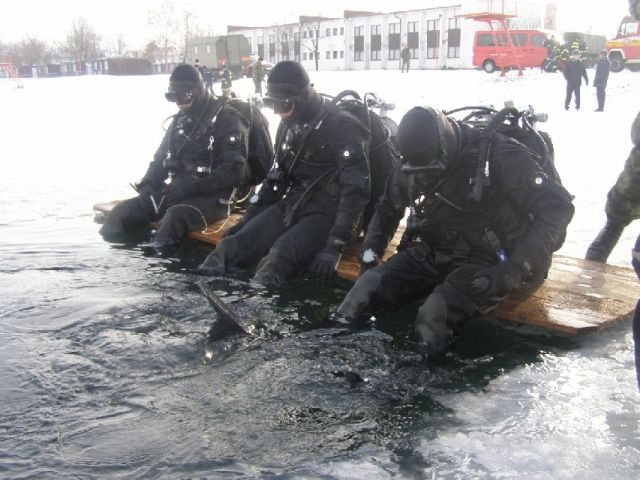 Okresné riaditeľstvo Hasičského a záchranného zboru v Pezinku v spolupráci s Integrovaným záchranným systémom Slovenska usporiadalo dňa 15.januára 2009 v Senci na Slnečných jazerách už 12. ročník potápania pod ľadom. Na uvedenú akciu boli pozvaní aj potápači ozbrojených síl SR. Cvičenia sa zúčastnili 5 potápači zo ženijného práporu Sereď a 2 potápači z 5. pluku špeciálneho určenia Žilina. Náročné úlohy výcviku splnili na výbornú, a to aj napriek tomu, že niektorí robili ponor pod ľad po prvý krát v živote. Podmienky počas vykonania cvičenia boli naozaj drsné. Teplota vzduchu bola mierne pod bodom mrazu a teplota vody sa pohybovala v rozmedzí od 2-4 stupňov celzia. Hrúbka ľadu bola 23 až 25 cm, viditeľnosť pod vodou do 4m a maximálna hĺbka ponoru 5m. Úlohou každého cvičiaceho bolo preplávať pod ľadovým povrchom z jedného bodu ponoru do druhého výstupného otvoru. Vstupný a výstupný otvor boli od seba vzdialené 100m a okrem toho bol na tejto trase bol pre prípad núdze k dispozícii jeden tzv. kontrolný a záchranný otvor. Cvičenie preverilo hlavne psychickú pripravenosť cvičiacich. Okrem potápačov OS SR sa cvičenia zúčastnili aj potápači HZZb a IZS z Bratislavy, Trnavy, Trenčína, Pezinku a Senca.