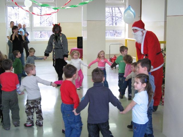 Mikulášske posedenie Každoročne pripravujú príslušníci 12. mechanizovaného práporu v Nitre pre svoje deti „Mikulášske posedenie“ a nebolo tomu inak ani tento rok dňa 6.12.2008. Na deti čakala vyzdobená sála s vianočným stromčekom, sladké pohostenie a čakanie na Mikuláša im spríjemnilo vystúpenie detí zo Základnej umeleckej školy Jozefa Rosinského v Nitre, ktoré sa predviedli so svojim tanečným umením. Vyvrcholením programu bol príchod Mikuláša a čerta. Deti so žiariacimi očami sledovali kôš plný sladkostí, ktoré priniesol Mikuláš, ale niektoré aj trochu bojazlivo pozorovali hrôzostrašného čerta. Mikuláš si vypočul pekné pesničky a básničky od detičiek a odovzdal im plné balíčky dobrôt. Na záver si s deťmi zatancoval a prisľúbil, že určite príde aj na budúci rok.
