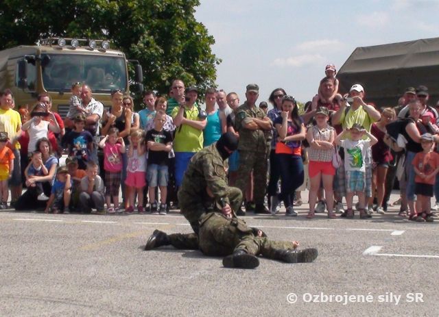 Okrem statických ukážok si profesionáli z radov 13. mechanizovaného práporu Levice pripravili pre deti aj dynamické ukážky sebaobrany, manipulácie so zbraňou, sústredenú paľbu mechanizovaného družstva na vrtuľník, ako aj ukážku boja v zastavanom priestore. Všetky ukážky pod velením npor. Gabriela Molnára sa stretli s pozitívnym ohlasom u malých aj dospelých návštevníkoch, ktorí každú ukážku ocenili svojim potleskom. Súťaženiachtivé deti si mohli zmerať svoje sily na prekážkovej dráhe, ktorá navyše preverila ich obratnosť a odvahu.