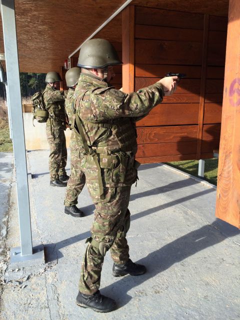 Po kontrole prítomnosti, ústroje a zbraní, riadiaci zamestnania major Rastislav Ledaj prítomných poučil o bezpečnostných opatreniach pri streľbe a pravidlách strelieb.