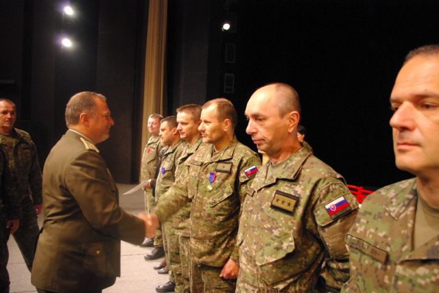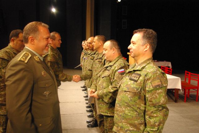 V rámci slávnostného nástupu veliteľ pozemných síl vybraným príslušníkom veliteľstva odovzdal vojenské vyznamenania a ocenenia udelené ministrom obrany Slovenskej republiky a náčelníkom Generálneho štábu OS SR.