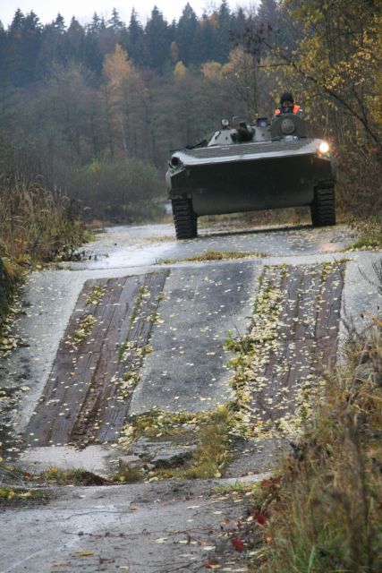 V priestoroch cvičiska Sučany v podhorí Malej Fatry v týchto dňoch napríklad prebieha intenzívna príprava kurzu vodičov pásových vozidiel. Kurz, ktorý trvá 20 výcvikových dní je určený pre budúcich vodičov BVP-1, 2, OT-90, prieskumného prostriedku Svatava, tanku T-72 i uvoľňovacieho tanku UT-72 B. Inštruktor výcviku tankových odborností rotný Stanislav Janíček pripomína, že v kurze sa zišli najmä vodiči, ktorí vo svojich útvaroch prechádzajú z kolesovej a inej techniky na pásovú. Najmä na BVP a tanky. „Frekventanti úspešne absolvovali prvý týždeň teoretickej prípravy a teraz postupne plnia úlohy pri praktických jazdách. Dnes majú za úlohu naučiť sa prekonávať prekážky a obmedzené priechody. Jednotlivé prekážky sú rozmiestnené na dráhe dlhej takmer 3,5 kilometra. Najviac im dá zabrať prekonanie makety mostovky mostného tanku, ale aj okopu. Zatiaľ pri plnení úloh ukazujú všetci frekventanti kurzu veľkú snahu. Medzi najlepších patrí slobodník Jozef Varga a desiatnik Marek Stančík,“ konštatuje inštruktor. Spoločne s ním vedie kurz aj rotmajster Peter Bevelagua.