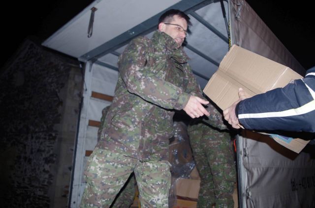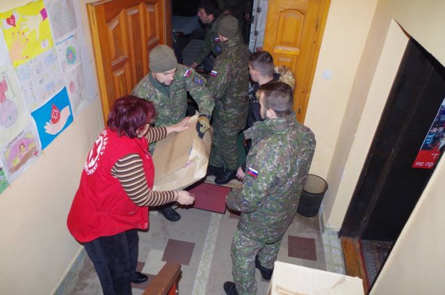 Kamión s pomocou pomáhali okrem slovenských vojakov vykladať v Centre červeného kríža aj jeho dobrovoľníci a miestni občania. Hoci do miesta určenia došiel až v neskorých večerných hodinách. Plukovník Marián Bodolló vysvetľuje, že humanitárna pomoc pozostáva z dvoch paliet oblečenia a hračiek pre deti, oblečenia pre dospelých zo zbierky, ktorú organizovali duchovní EPS AOS Liptovský Mikuláš a samohybného delostreleckého oddielu Michalovce. Obsahuje ďalej 700 kusov hygienických balíčkov i paletu detských plienok. „Okrem toho je jej súčasťou aj materiálna pomoc z ministerstva vnútra. Najmä vlnené prikrývky a spacie vaky. Finančný dar z prostriedkov rezortu zahraničia. Som rád, že celá prospešná akcia, ktorá robí v tomto ťažko skúšanom regióne Balkánu veľmi dobré meno Slovensku a jeho ozbrojeným silám sa podarila vďaka vzájomnej súčinnosti a pomoci rezortov obrany, vnútra a zahraničia. V tejto pomoci chceme pokračovať aj v budúcnosti,“ zdôraznil po odovzdaní humanitárnej pomoci Generálny duchovný OS a OZ SR plukovník Marián Bodolló.