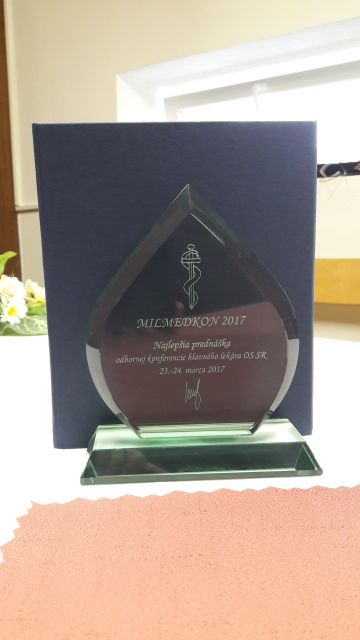 Na základe hlasovanie účastníkov konferencie odovzdal v rámci záverečného slova  hlavný lekár OS SR plukovník MUDr. Vladimír LENGVARSKÝ, MPH cenu za najlepšiu prednášku konferencie nadporučíkovi MUDr. Tomášovi VIRECOVI za príspevok o pôsobení príslušníkov chirurgického tímu ROLE 2E v operácií RS Afganistan.