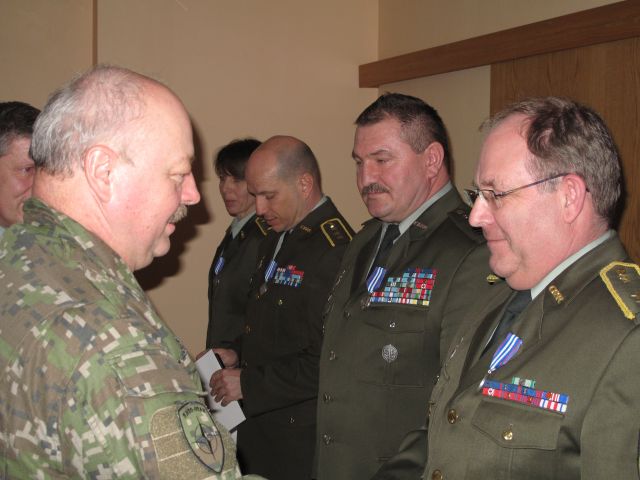 V úvode veliteľského zhromaždenia genpor. Ing. Pavel Macko, CSc. dekoroval príslušníkov úradu hlavného lekára OS SR medailami k 25. výročiu Ozbrojených síl Slovenskej republiky.