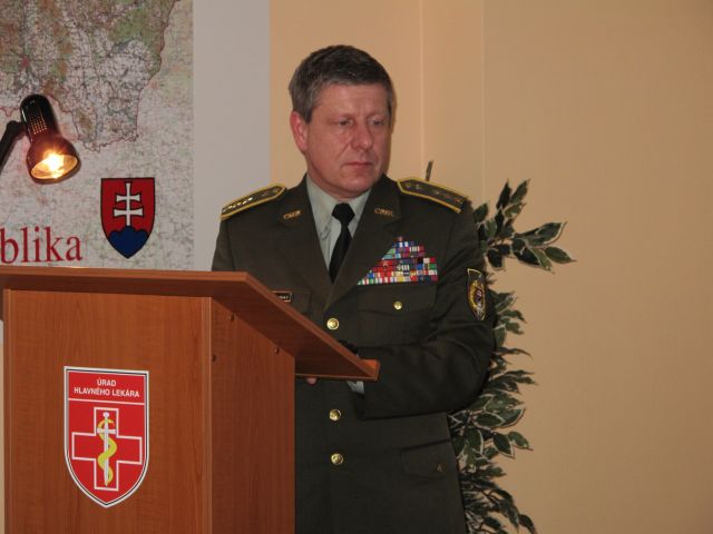 a veterinárneho zabezpečenia. Vo svojom hodnotení poukázal na poddimenzovanosť v personálnej oblasti (najmä u lekárov), pridelené (krátené) finančné prostriedky a reálne výsledky obstarávania. V závere  svojho vystúpenia poďakoval všetkým profesionálnym vojakom a zamestnancom Úradu hlavného lekára za prácu vykonanú v roku 2017 a stanovil úlohy na výcvikový rok 2018.