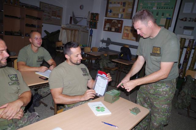 Účastníkmi kurzu sú príslušníci seredského ženijného práporu a rožňavského práporu RCHBO. Veď práve v Seredi by mala vzniknúť jednotka EOD. Spokojnosť so zameraním a obsahom kurzu vyjadril rotný Martin Nižný zo ženijného práporu, ktorý bol dva razy v operácii ISAF a koncom minulého roku sa vrátil z Iraku, kde školil irackých vojakov v odmínovaní, ale aj náčelník skupiny EOD v rožňavskom prápore RCHBO nadporučík Peter Ujházy, či rotmajstri Peter Klein a Marián Kostra zo ženijného práporu.