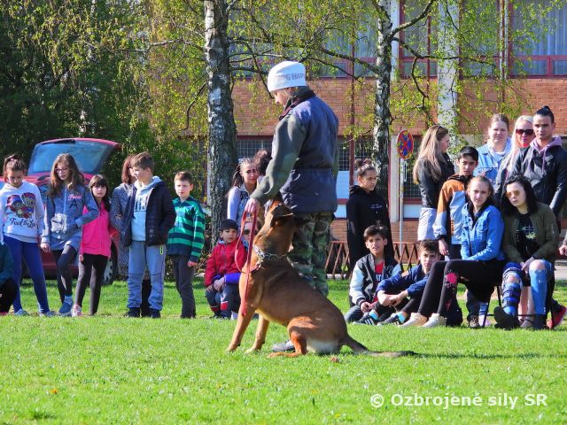 V detskom mestečku v mestskej časti Zlatovce v Trenčíne sa naši vojaci stretli spolu s príslušníkmi vojenskej polície, Základne stacionárnych KIS, regrutačného strediska Trenčín a čatou dozornej a strážnej služby z muničného skladu Kubrá. Asi päťdesiatke detí s pedagógmi vojaci pripravili bohatý program v podobe ukážok zákrokov služobných psov a špeciálnej telesnej prípravy tzv. boja zblízka. Deti si mohli vyskúšať nasadzovanie ochrannej masky OM-99, používanie rádiostanice RF 13.01, zložiť Samopal vz.58, pištoľ CZ P-09, alebo univerzálny guľomet vz.59. Príjemné dopoludnie prežili nielen deti, ale aj vojaci a radosť v tvárach detí ukazovala, že aj takéto aktivity majú svoj význam.
