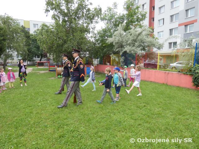 Dňa 7. júna sme navštívili materskú škôlku na Plickovej ulici v bratislavskej Rači. Príslušníci Čestnej stráže prezidenta SR sa najmenším deťom predviedli so svojim programom. V rámci ukážok sa deti zábavnou formou oboznámili s úlohami, ktoré ČS PSR plní. Predviedli sme im výstroj a výzbroj, ktorú používame pri reprezentácii a výcviku. Deti si vyskúšali pochodovanie pod velením čat. Tomáša Boldoga. Rtn. Jozef Aľušík, des. Roland Letovics a slob. Michal Tomašovič deťom predviedli ukážky zo sebeobrany. Deti si mohli chytiť do rúk guľomet či pušku a posadiť sa do vozidla Nissan Pathfinder. Na záver našej návštevy im čat. Martin Mlynek zahral niekoľko melódií so známych rozprávok a deti s nadšením hádali ich názvy.