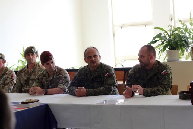 Po krátkom brífingu kapitána Kinsellu nasledovala diskusia, v ktorej pán Kuchta vyjadril poďakovanie zástupcom BMATT za aktívny príspevok do rozvoja bilaterálnej vojenskej spolupráce medzi Slovenskou republikou a Spojeným kráľovstvom v oblasti vzdelávania a výcviku nižšieho veliteľského personálu v rámci štandardov NATO, a to využívaním inovatívnych metód vodcovstva. V tejto súvislosti ocenil aj prebiehajúcu aktivitu, ktorá v nemalej miere prispeje k zvýšeniu pripravenosti personálu OS SR. Plukovník Catmur vyjadril vďaku za podporu výjazdového tímu BMATT a zároveň podporil myšlienku ďalšej spolupráce. Po diskusii nasledovala praktická ukážka vydávania operačného rozkazu účastníkmi kurzu v poli za využitia vizualizácie na plastickom stole.