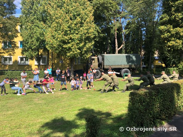 Pre deti a zamestnancov boli pripravené statické ukážky techniky, zbraní a výstroje, maľovanie na tvár maskovacími farbami, ukážka zdravotníckej prípravy, či topografickej orientácie a práce s mapou a buzolou. Nechýbala ani dynamická ukážka sebaobrany príslušníkov roty podpory velenia, počas ktorej boli deťom prevedené ukážky úderov, kopov a chvatov, ktoré si deti mohli vyskúšať priamo na profesionálnych vojakoch. Obľúbenou disciplínou bola strelecká súťaž zo vzduchovky, prekážková dráha, na ktorej si mohli jednotlivé tímy zmerať sily a súťažiť medzi sebou, no najmä preťahovanie lanom medzi deťmi a profesionálnymi vojakmi.