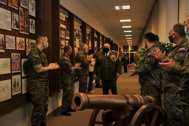 Vojenská rada veliteľa pozemných síl a rozlúčka s generálom Navrátilom V priestoroch Veliteľstva pozemných síl OS SR v Trenčíne sa vo štvrtok 17. decembra uskutočnila posledná Vojenská rada veliteľa pozemných síl v tomto výcvikovom roku, ktorá bola spojená so slávnostným nástupom pri príležitosti odchodu zástupcu veliteľa PS OS SR brigádneho generála Karola Navrátila a veliteľa Základne výcviku a mobilizačného doplňovania plukovníka Miroslava Fázika do výsluhového dôchodku. Ďalšou milou povinnosťou brigádneho generála Ivana Pacha bolo odovzdanie vecných darov od náčelníka Generálneho štábu OS SR generála Daniela Zmeka pre veliteľa 1.mb brigádneho generála Ivana Baloga a náčelníka Odboru operačného plánovania a riadenia VePS plukovníka Róberta Funtaľa. Slávnostný nástup ďalej pokračoval odovzdaním medailí veliteľa PS OS SR plukovníkovi Miroslavovi Fázikovi a pánovi Vladimírovi Sýkorovi, ktorí obidvaja opúšťajú pozemné sily a odchádzajú do „civilu“. V mene všetkých prítomných veliteľ PS OS SR odovzdal plukovníkovi Fázikovi dary a vo svojom príhovore ocenil jeho dlhoročnú prácu a prínos, poďakoval za profesionalitu a poprial najmä veľa zdravia a síl do „tretej fázy“ života. Po viac ako 42 rokoch v uniforme odchádza k 31. decembru 2020 z funkcie zástupcu veliteľa pozemných síl brigádny generál Karol Navrátil. Z úst brigádneho generála Pacha zazneli priateľské slová vďaky a úcty, keďže vojenské cesty oboch generálov sa stretli už v roku 1990 na vtedajšej 14. motostreleckej divízii: „Karol bol vždy zodpovedným a pracovitým vojakom, generálom, profesionálom. Vyznačoval sa schopnosťou dotiahnuť veci do úspešného konca a kedykoľvek som potreboval pomoc, vedel som na koho sa obrátiť.“ Dodal, že najviac času treba na vyslúženom dôchodku venovať rodine, blízkym a sebe, aby aspoň z časti vynahradil čas, ktorý obetoval ozbrojeným silám. Na druhú stranu je veliteľ presvedčený, že ich priateľstvo a stretávanie bude pokračovať aj naďalej. Generál Navrátil poďakoval všetkým príslušníkom veliteľstva za ich kvalitnú prácu a podporu, bez ktorej by nedokázal dosiahnuť to, čo vo svojej kariére dosiahol. So zástupcom veliteľa PS OS SR sa prišiel osobne rozlúčiť aj náčelník Generálneho štábu OS SR generál Daniel Zmeko.