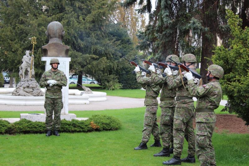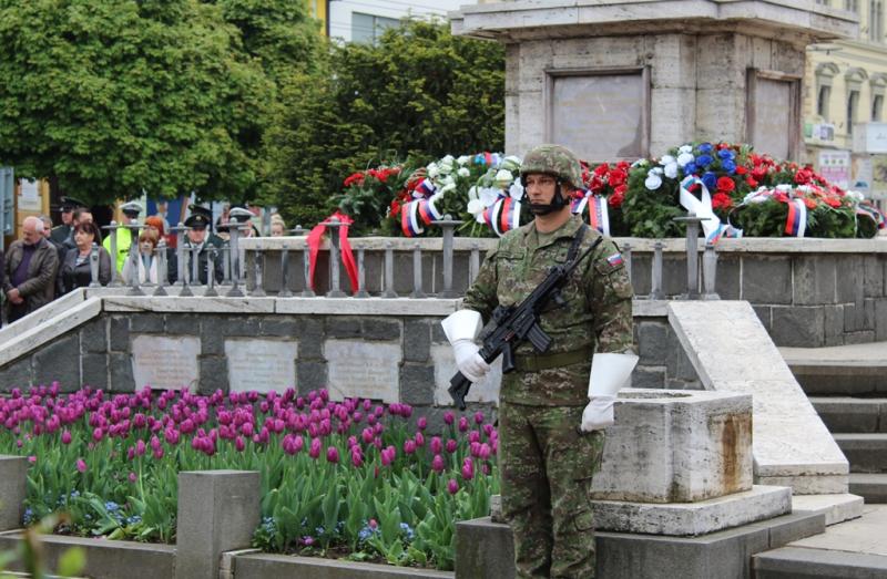 Predstavitelia prešovskej posádky na oslavách 72. výročia od ukončenia 2. svetovej vojny