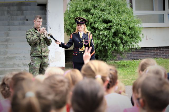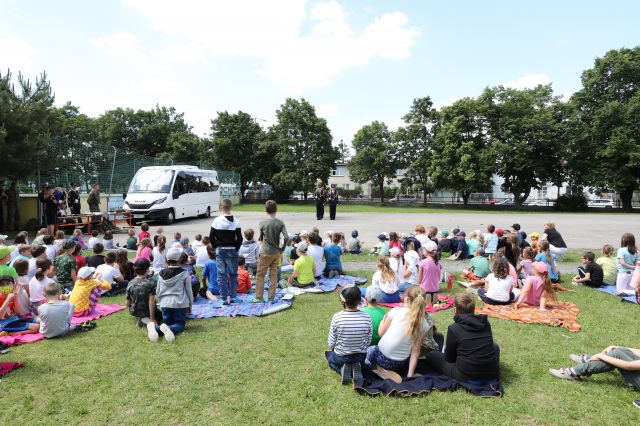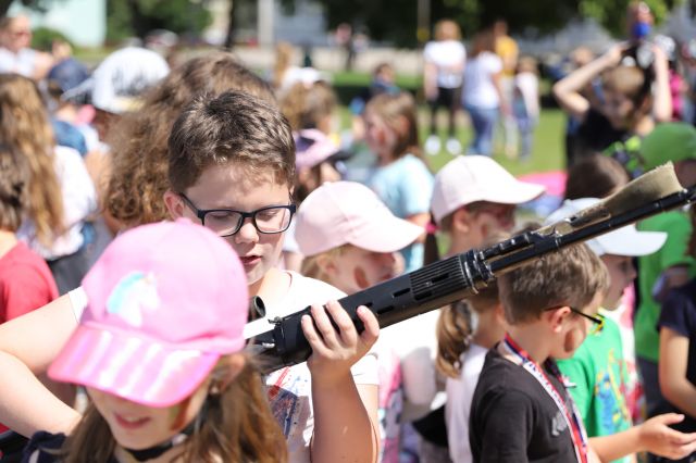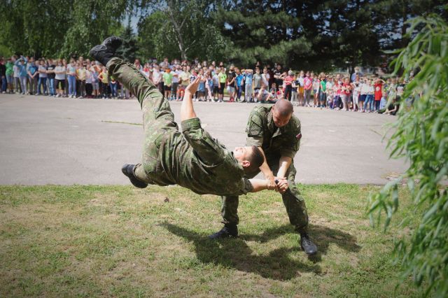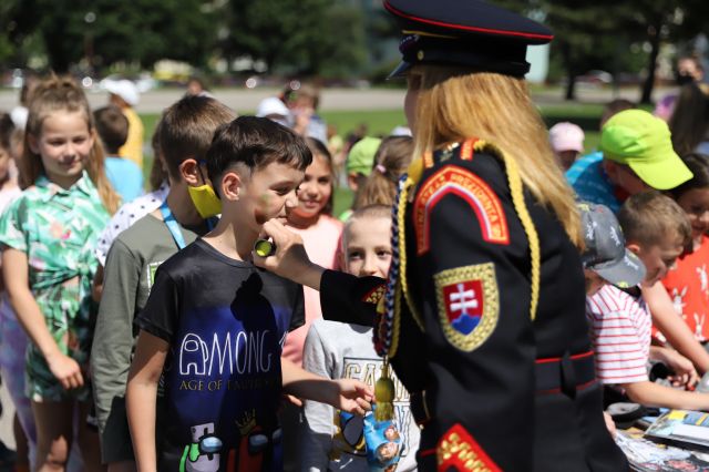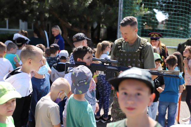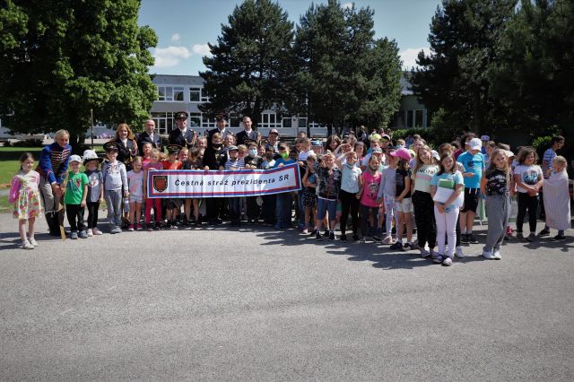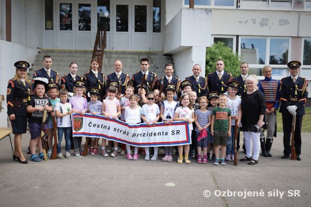 Dňa 14. júna sme si pripravili program pre deti zo Základnej školy Podzáhradná v Bratislave a Základnej školy Andreja Kubinu v Trnave. Obe školy navštevujú deti našich profesionálnych vojakov. Príslušníci Čestnej stráže prezidenta SR sa deom predviedli so svojim programom. Premiéru galaprogramu mali aj dve naše príslušníčky slobodníčka Andrea Harčariková a slobodníčka Monika Kováčiková. V rámci ukážok sa deti zábavnou formou oboznámili s úlohami, ktoré ČS PSR plní. Predviedli sme im výstroj a výzbroj, ktorú používame pri reprezentácii a výcviku. Deti si vyskúšali pochodovanie pod velením čatára Mariána Simana a slobodníka Matúša Smetanku. Rotmajster Jozef Ažušík a desiatnik Peter Bacigál deom predviedli ukážky zo sebeobrany. Deti si mohli chyti do rúk gužomet, pušku a šabžu. V historickej uniforme sa im predviedla desiatnička Marta Jacková. Hudobník čatár Marek Turček deom zahral niekožko melódií so známych rozprávok a deti s nadšením hádali ich názvy, za čo dostali sladkú odmenu. Búrlivým potleskom, úsmevom na tvárach detí sme sa s nimi rozlúčili. Naša snaha spríjemni deň našou prítomnosou bola odmenená krásnymi obrázkami, ktoré nám poslali deti zo ZŠ Podzáhradná.