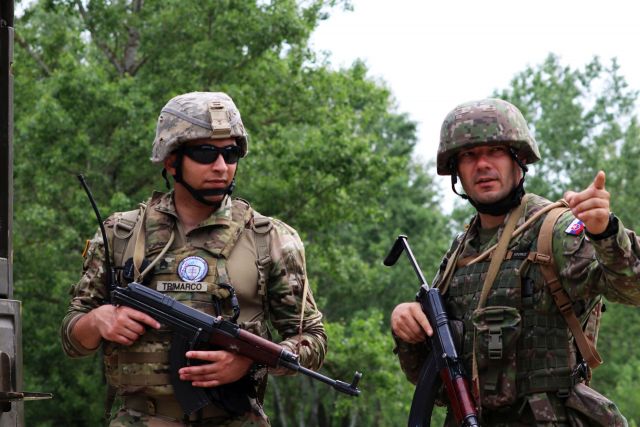 Spoločný výcvik slovenských a amerických ženistov Najvýznamnejšie cvičenie v roku 2022 u nás Slovenský štít, do ktorého sa postupne zapája vyše 1200 vojakov zo Slovenska, Maďarska, americkej armády v Európe, Národnej gardy Indiany, ako aj príslušníci Armády Českej republiky, ktorí sú súčasťou predsunutej prítomnosti NATO na Slovensku, prebieha nielen v priestoroch Centra výcviku Lešť, ale napríklad aj v posádke Sereď, v tamojšom 91. ženijnom pluku. Na cvičisku Váh sa uskutočňuje počas dvoch májových týždňov spoločný výcvik slovenských a amerických ženistov. Konkrétne čaty EOD 901. ženijného práporu a čaty Národnej gardy Indiana. Veliteľ spoločného výcviku, ktorým je veliteľ 1. čaty EOD poručík Lukáš Hujo približuje, že cieľom a zmyslom výcviku je navzájom zjednotiť činnosť vojakov oboch armád, oboznámiť sa národnými postupmi v oblasti EOD. “ Základ je rovnaký, vychádza sa zo spoločnej metodiky. Určité odlišnosti sú skôr v detailoch. Napríklad v prípade zranenia Američania okamžite podávajú zranenému prvú pomoc. My zasa najskôr miesto zaistíme, prehľadáme, či sa tam ešte nevyskytujú nejaké nástražné výbušné zariadenia, ktorá by mohli zraniť ďalších vojakov. Som po prvý raz na takomto spoločnom výcviku s príslušníkmi americkej armády. Vidím veľkú snahu našich i amerických vojakov splniť čo najlepšie všetky ciele výcviku,“ hovorí poručík, ktorý v minulom roku absolvoval deväťmesačný kurz EOD v USA. Jednotke velí len pol roka a preto sa plne spolieha na skúsených odborníkov s dlhoročnou praxou ako sú nadrotmajster Gabriel Šimon, ktorý zastupuje veliaceho poddôstojníka, či velitelia EOD tímov nadrotmajstri: Martin Kabát, Peter Klein a Marián Bartek. Spokojnosť so spoločným výcvikom ženistov neskrýva ani veliteľ americkej jednotky poručík Wiliam Melton: „ Hlavným cieľom spoločného výcviku bolo, aby sme sa zladili, oboznámili sa s postupmi, získali nové skúsenosti. Všetky spomínané úlohy sa nám podarilo naplniť. Spolupráca so slovenskými vojakmi je veľmi dobrá, mnohí majú bohaté medzinárodné skúsenosti. Pri výcviku využívame slovenské ručné strelné zbrane. Absolvovali sme s nimi aj streľby. Spočiatku sa nám zdali trochu ťažké, ale zvykli sme si. Som rád, že môžem byť so svojou jednotkou súčasťou najväčšieho cvičenia na Slovensku. Na Slovensku som bol po prvý raz nedávno na plánovacej konferencii na veliteľstve pozemných síl v Trenčíne pred Slovenským štítom. Celý výcvik zavŕšime v závere nášho pobytu na Slovensku priamo v Centre výcviku Lešť. Som presvedčený o tom, že cvičenie pomôže zvýšiť úroveň interoperability a pripravenosti na kolektívnu obranu v rámci Aliancie.“ Nadrotmajster Gabriel Šimon konštatuje, že jednotlivé praktické úlohy postupne plnili zmiešané slovensko – americké tímy. Práve takýto postup ich ešte viac stmelil a zblížil. S americkými ženistami necvičí po prvý raz. Okrem toho, že absolvoval EOD kurz v USA a ďalšie odborné výcviky v Nemecku pod americkým velením s príslušníkmi Národnej gardy Indiana spoločne plnil úlohy aj v predchádzajúcich cvičeniach Slovenský štít či Blonde Avalanche. „Každá takáto medzinárodná skúsenosť je vždy obohacujúca pre obe strany,“ hovorí skúsený EOD špecialista, ktorý pôsobil aj v operáciách medzinárodného krízového manažmentu v Iraku či Afganistane.